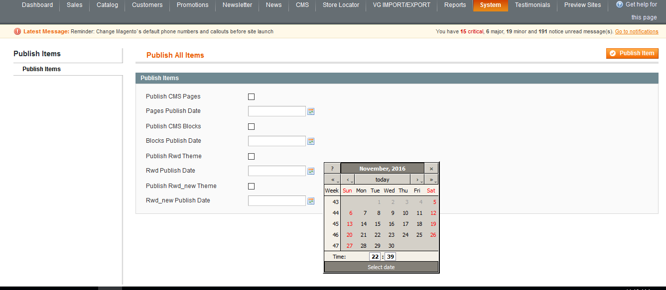 Users can publish the changes made in the theme files, CMS pages and CMS blocks to have them appear on live site by using this feature. Users can publish changes manually or by scheduling a publish. In the scheduled publish feature, users can select the date and time, and the changes will be automatically published to the live site.