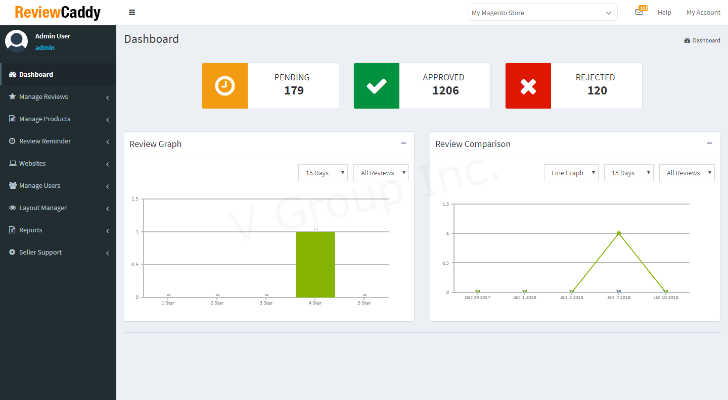 ReviewCaddy extension for Magento is developed to integrate the ReviewCaddy app with the Magento store. ReviewCaddy app is a review and rating app that provides the ability to the buyers to post reviews, rate products on the website, and share reviews on social media. The reviews and ratings are displayed on the product detail page. It also helps merchants to manage the product reviews.